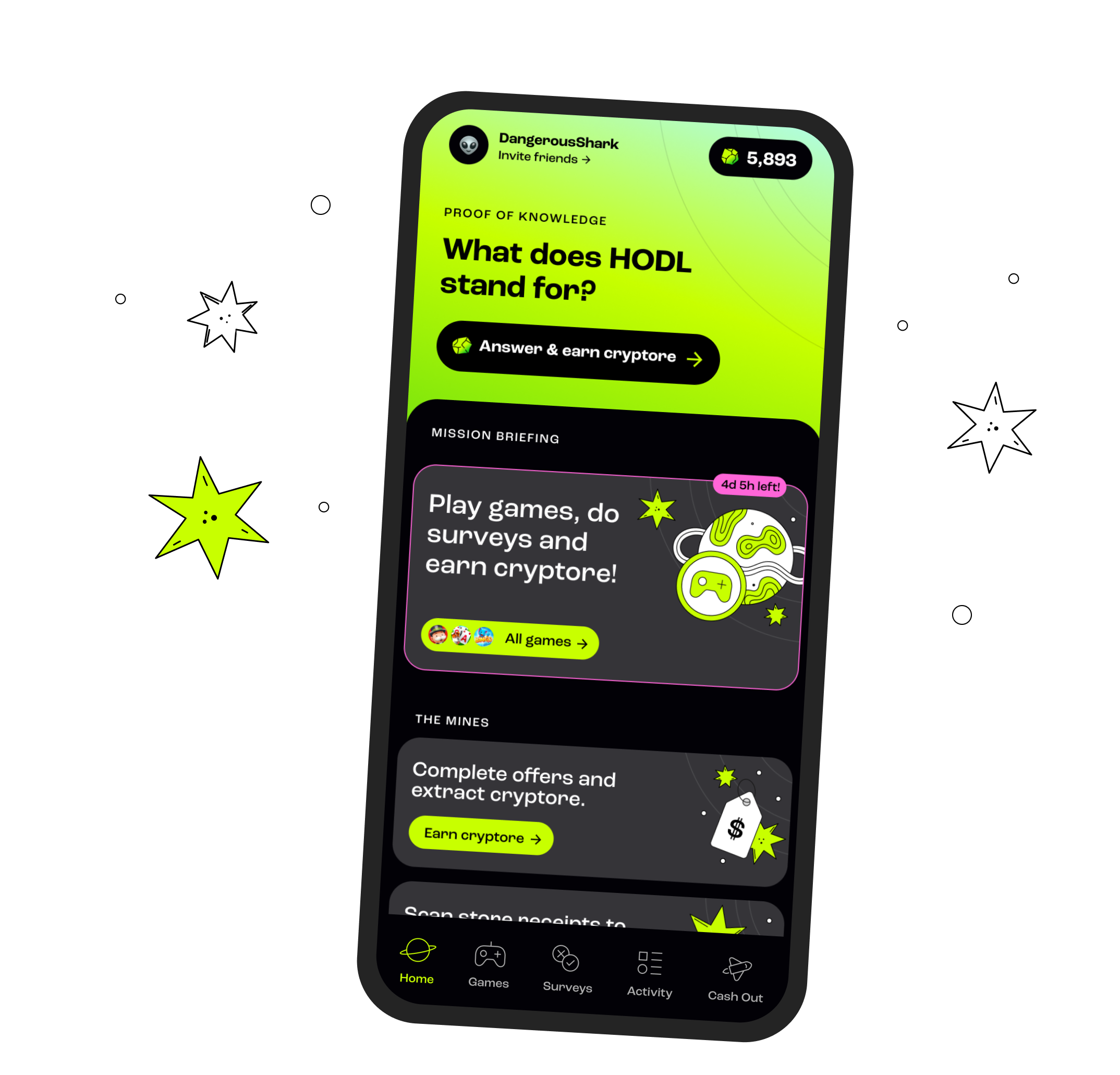 Every game or survey you play earns you Cryptore. Stack your Cryptore securely until you're ready to cash out.
